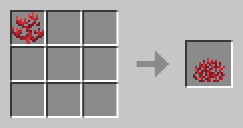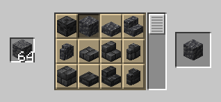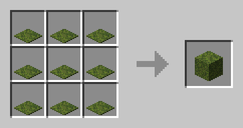 Voit craftata logit suoraan tikuiksi. Toimii myös kuorituilla puilla.Logeista voi myös tehdä suoraan isomman määrän arkkuja. Tämäkin toimii kuorituilla tukeilla.Myös trapdooreja voi tehdä suoraan ison määrän logeista tai kuorituista logeista.Kahden slabin yhdistäminen vierekkäin liittää ne taas kokonaiseksi palikaksi.Rooted dirt juurilla ja mullalla.Sammalta saa helposti levitettyä bone mealin avulla. Jos et jaksa mennä etsimään, niin tässä oiva ohituskaista sen ensimmäisen sammaleen hankintaan.Voit luoda sammaleen myös yhdeksästä sammalmatosta. Tämä toimii myös pale moss carpeteilla.Suuri dripleafSuuren dripleafin voi muuntaa pieneksiSpore blossomin voi luoda siemenillä, alliumilla ja flowering azalea lehdilläCoral faneja voi muuttaa Coraleiksi. Resepti toimii myös toiseen suuntaan.Coraleja taas voi muuntaa vastaaviksi blockeikseen.Punaista hiekkaa saa myös tehtyä tarpeen tullen.Ämpäriin saa helposti lunta tällä reseptilläNametagille on Karanteenissa oma resepti.Voit työstää soittokellon kivestä, kultapalikoista ja mistä tahansa puulaatasta.Onnenkeksi. Mitä tahansa voi selvitä syödessäsi sen.End crystal. Karanteenissa Ender dragon pudottaa joka spawnaus kerran jälkeen lohikäärmeen munan. Siksi end crystalleille on asetettu uusi vaikeampi resepti.Bottle o' Enchanting, kätevä tapa kantaa mukanaan ylimääräisiä leveleitä.Chainmail armorit rakennetaan iron bareista normaalien armoreiden tapaan.Enää ei tarvitse craftailla erikseen redstone torcheja. Repeaterit saa nyt tehtyä helpomminkin.Dispenserien craftays onnistuu nyt ilman bowien tekoa erikseen. Enää ei tarvitse tapella siis stackaantymättömien tavaroiden kanssa.Tuliko mainattua deepslatea silk touchilla? Voit tehdä stonecutterilla normaalista deepslatesta cobbled deepslatea ja sen variantteja.Kaikki lasipaneelityypit voi muuttaa takaisin palikoiksi.Värjättyä lasia voi sulattaa takaisin värjäämättömäksi.Blast furnacella hiiliblockista voi sulattaa mustan väriaineen.Voit sulattaa blast furnacella kiveä, mukulakiveä ja muutamia muita kivilajeja soraksi.Gravelin voi taas vuorostaan muuntaa blast furnacella hiekaksi.Raudat, kullat ja kuparit voi nyt sulattaa suoraan kokonaisina blockeina blast furnacella.Builders wand, rakentajan essentiaalinen työkalu. Käytössä sisukkaasta ylöspäin.Erilaisia spawnereita voi luoda tällä tavalla.Voit tehdä pelaajan pään, johon saat äänestämällä satoja erilaisia tekstuureja. Kokeile /pää -komennon kanssa!Ja Zombien pään. Raaka-aineina Golden Apple, Bone block ja Rotten flesh. :oVoit tehdä myös Skeletonin pään. Raaka-aineina Golden Apple, Bone ja Bone block.Meemi.